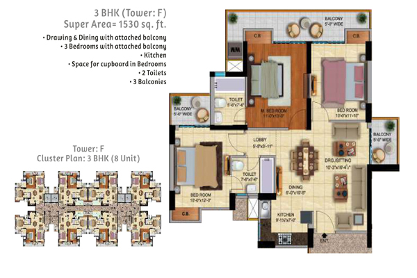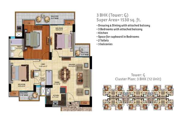 | 3 BHK | 1530 Sq.ft. | 11000 |