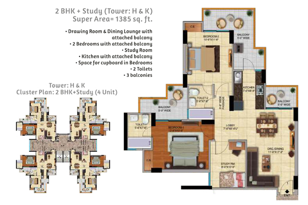 | 2 BHK | 1385 Sq.ft. | 11000 |