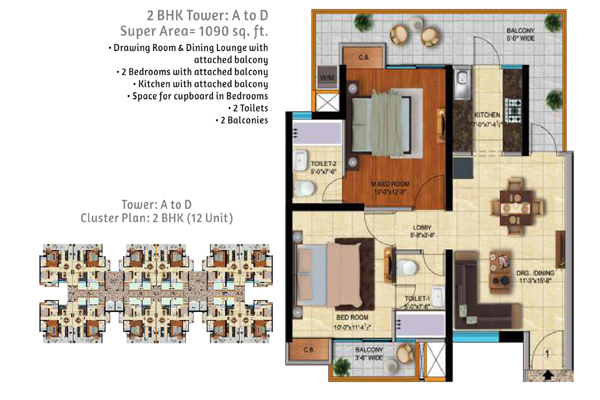 | 2 BHK | 1090 Sq.ft. | 11000 |