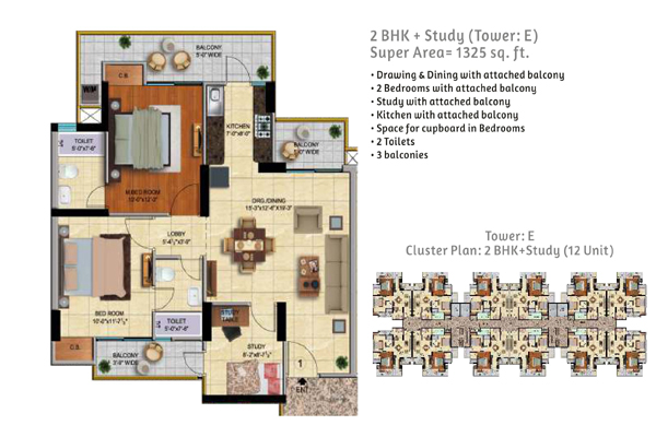 | 2 BHK | 1325 Sq.ft. | 11000 |