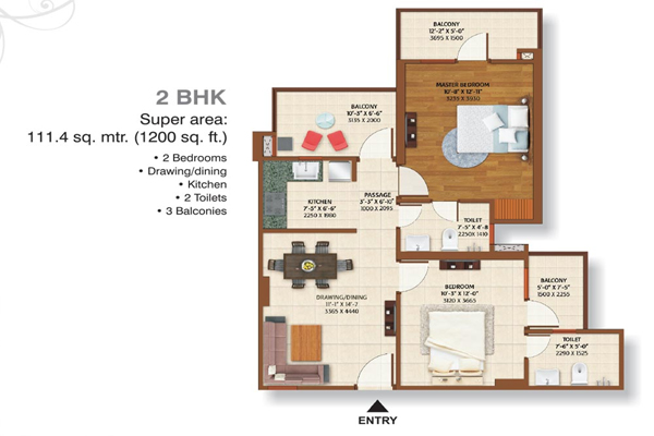 | 2 BHK | 1200 Sq.ft. | 11500 |