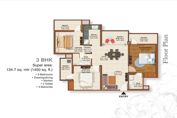 | 3 BHK | 1450 Sq.ft. | 11500 |