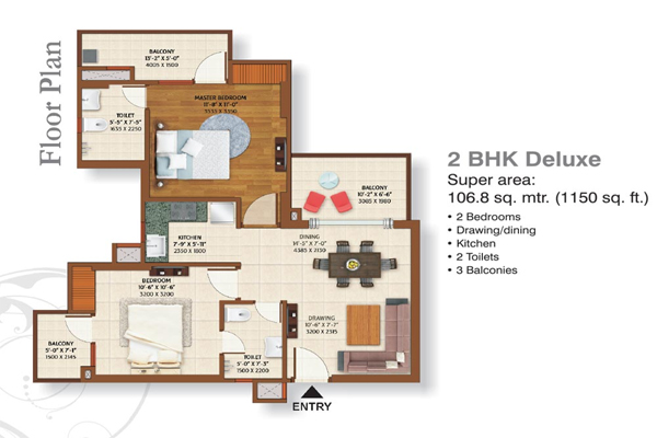 | 2 BHK | 1150 Sq.ft. | 11500 |