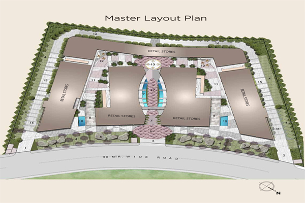 The project offers commercial plots in multiple sizes, ideal for retail showrooms, restaurants, cafés, and offices.