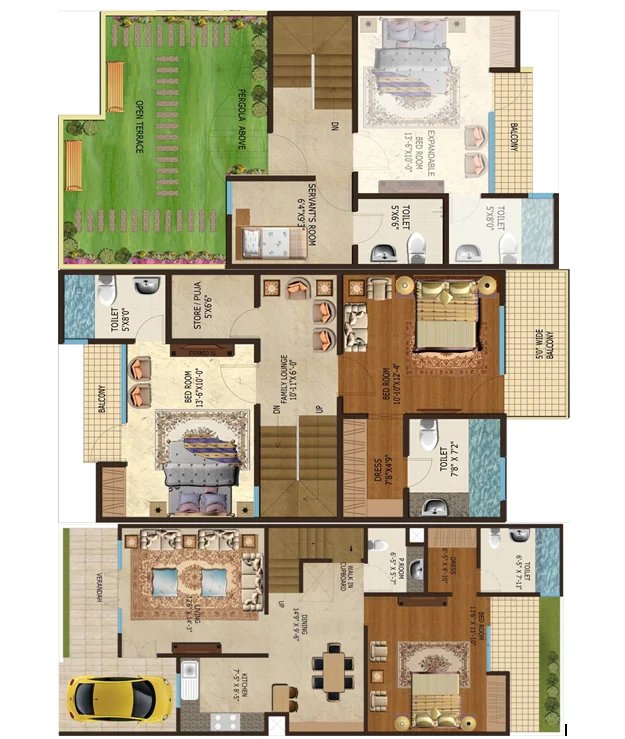 The villas in this project are thoughtfully planned with modern architecture and smart space utilization. Each unit comes with spacious bedrooms, a well-designed living area, balconies, and private open spaces. The layout ensures natural light and ventilation, making the homes more comfortable and energy-efficient. This makes Amrapali Dream Valley Villas an excellent choice for families seeking a premium lifestyle.