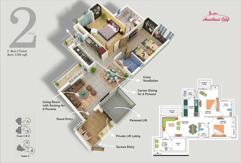 | 2 BHK | 1195 Sq.ft. | On Request |