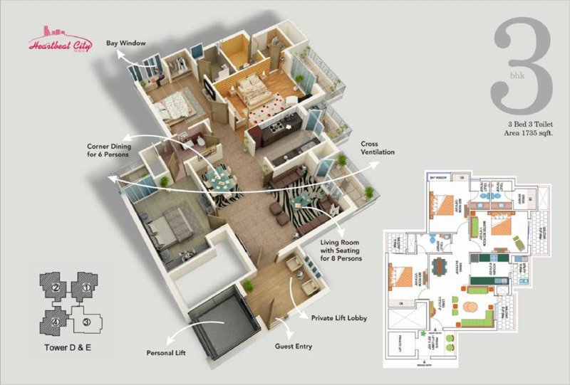 | 3 BHK | 1735 Sq.ft. | On Request |