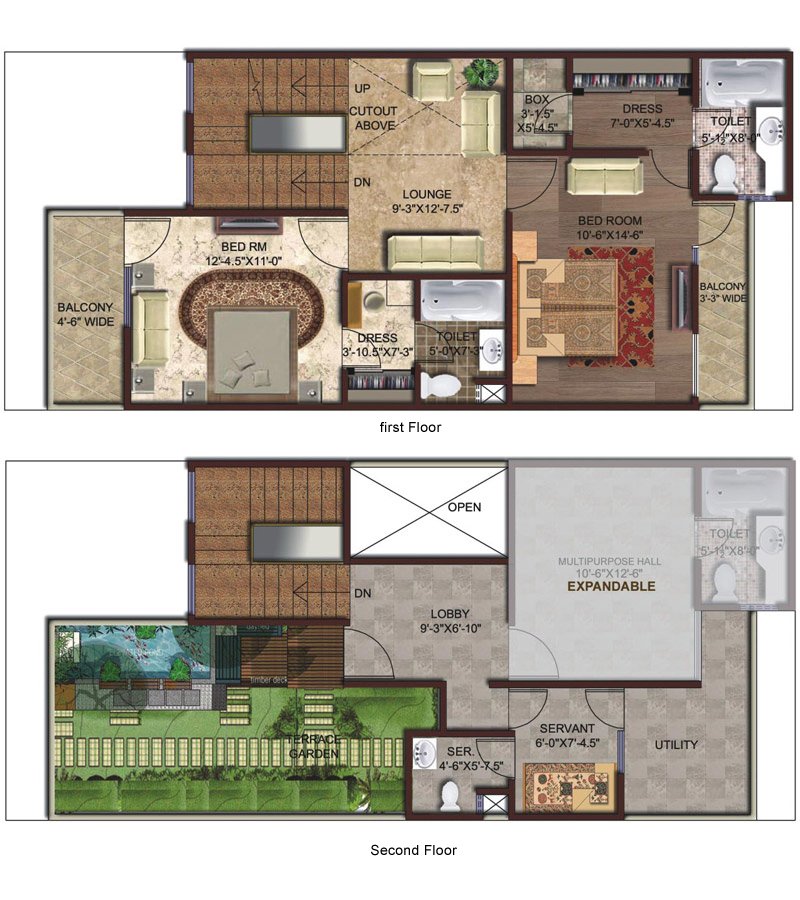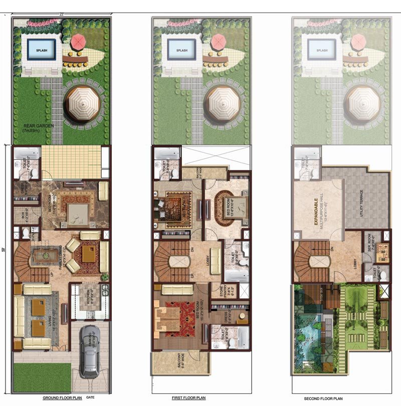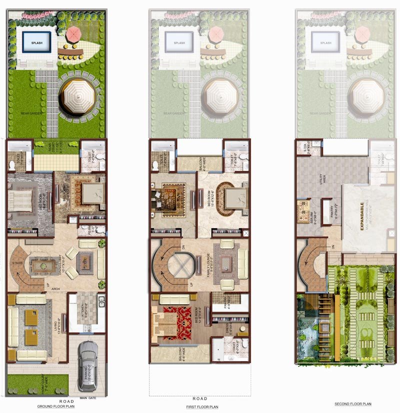 Duplex Villa - Type1 Ground Floor, First Floor, Second Floor Total Saleable Area : 2950 Sqft. Garden Area : 730 Sqft.