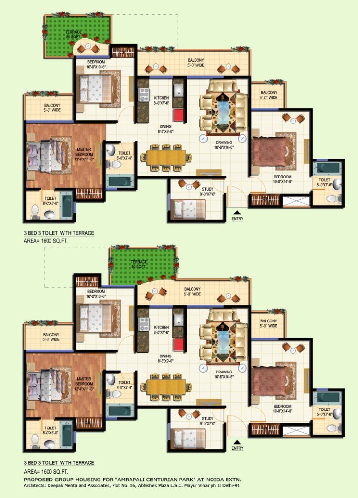 | 3 BHK | 1600 Sq.ft. | On Request |