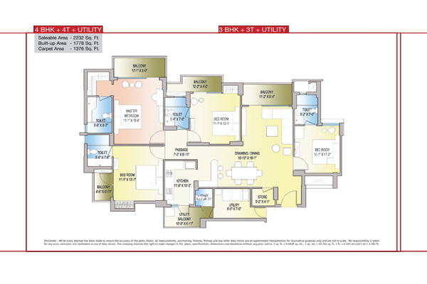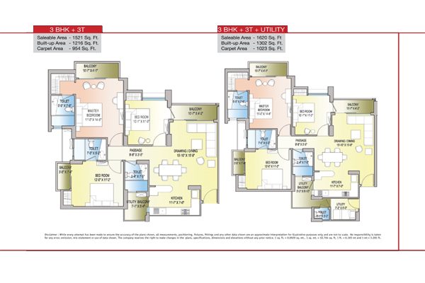| 3 BHK + Ut | Sq.ft. | |