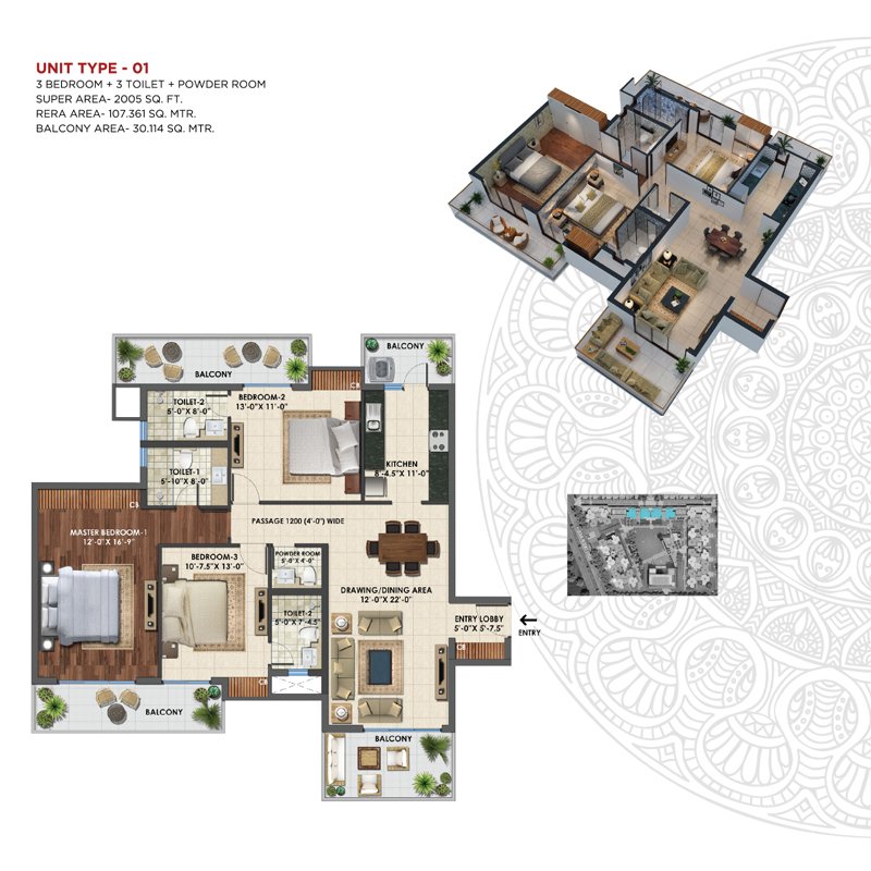 | 3 BHK | 2005 Sq.ft. | On Request |