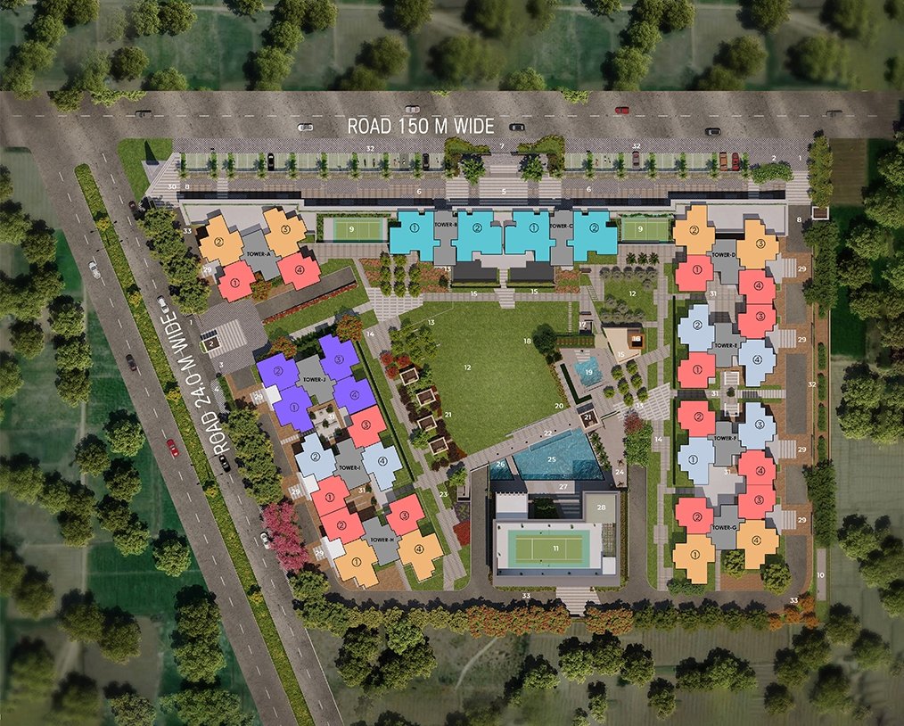 One of the key highlights of Express Astra is its high-rise architecture. The project comprises around 7 to 8 towers with approximately 30+ floors, offering stunning views of the surrounding landscape. The modern design and premium construction quality reflect elegance and durability. Wide internal roads, landscaped gardens, and open green areas create a peaceful environment for residents.