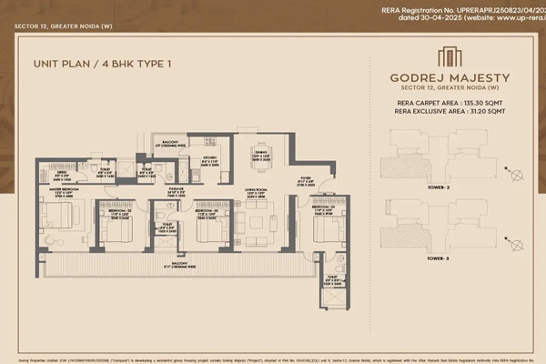 Godrej Majesty is an ultra-luxury residential project by Godrej Properties, located in Sector 12, Noida Extension. It offers premium 3 and 4 BHK apartments with neoclassical architecture, spacious layouts, and world-class amenities, designed to provide a luxurious lifestyle.