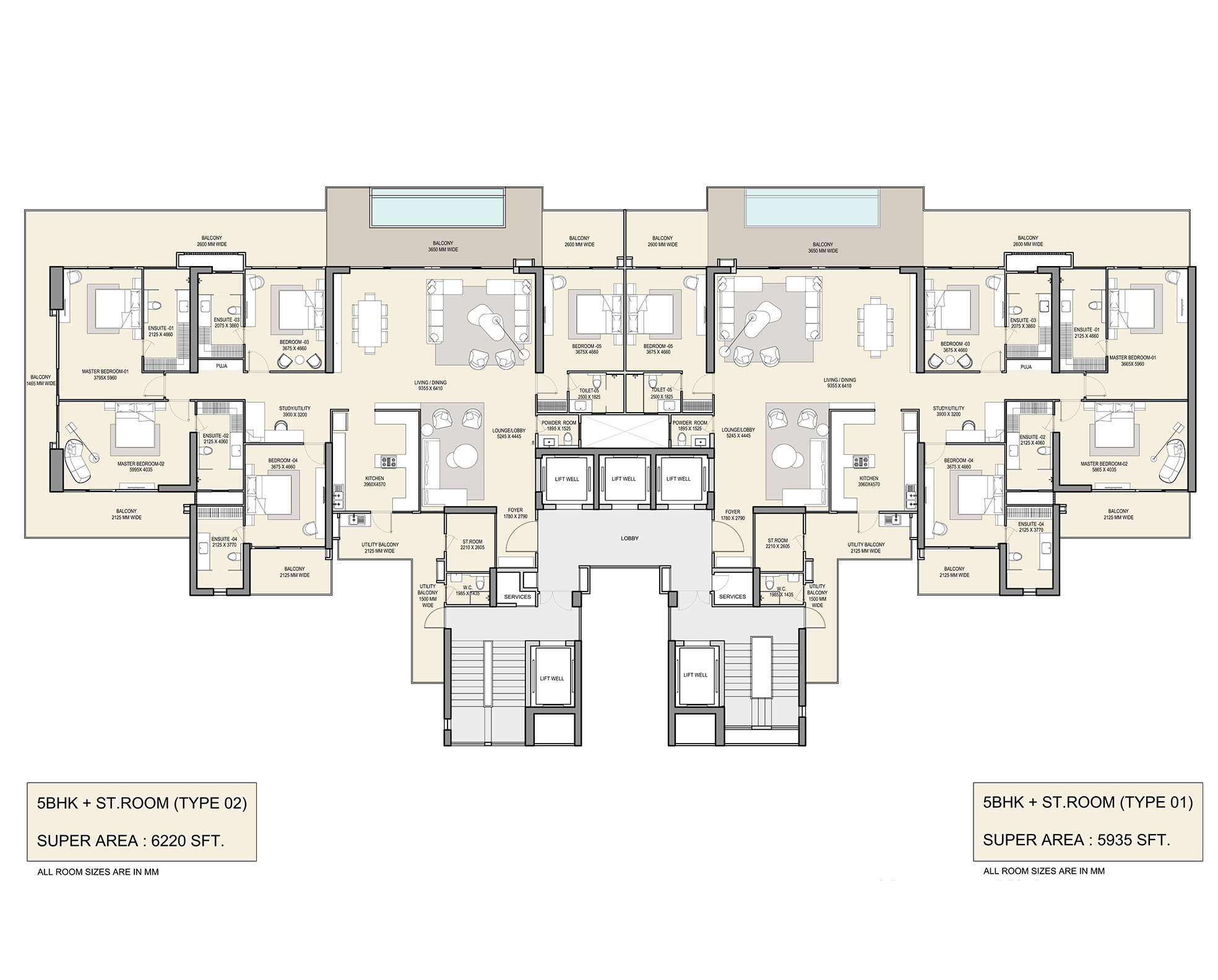 | 5 BHK | 6220 Sq.ft. | On Request |