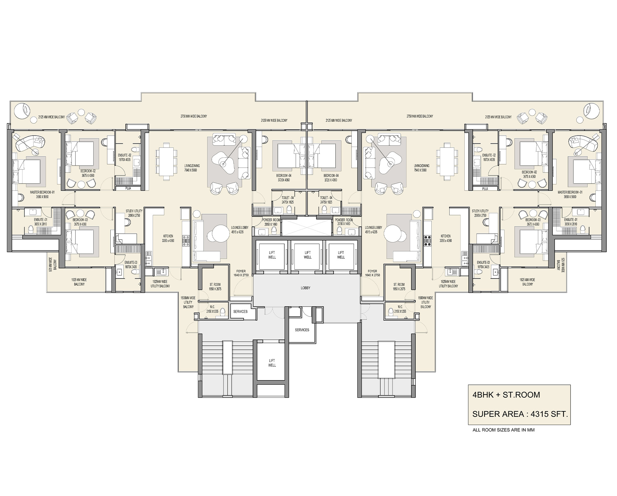 | 4 BHK | 4315 Sq.ft. | On Request |