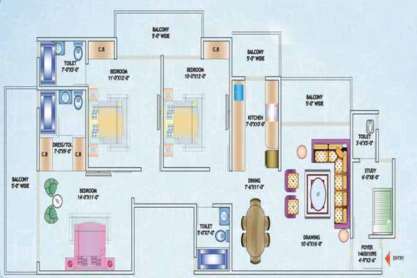 | 3 BHK | 1400 Sq.ft. | On Request |