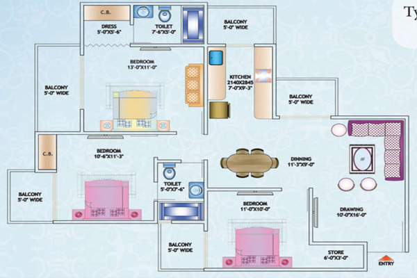| 3 BHK | 2320 Sq.ft. | On Request |