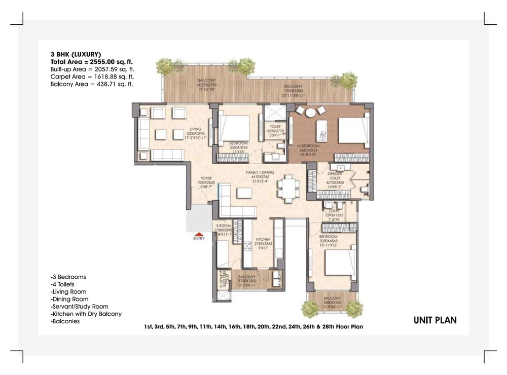 | 3BHK Luxur | 2555 Sq.ft. | On Request |