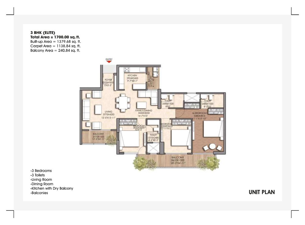 | 3 BHK Elit | 1700 Sq.ft. | On Request |