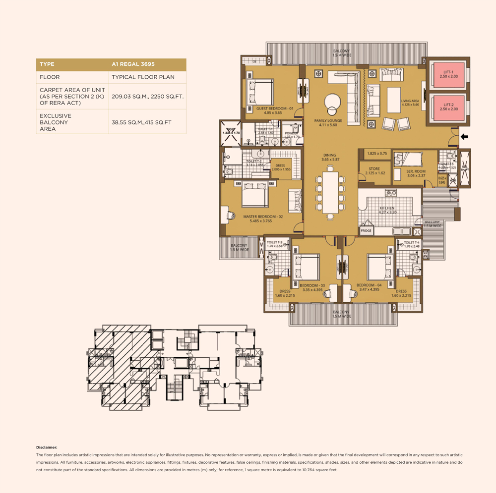 | 4 BHK | 3695 Sq.ft. | On Request |