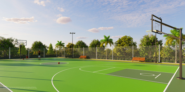 - Outdoor sports courts: badminton, tennis, basketball