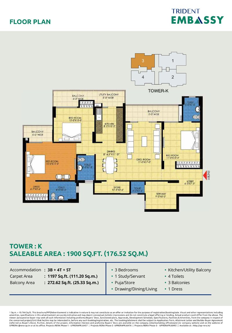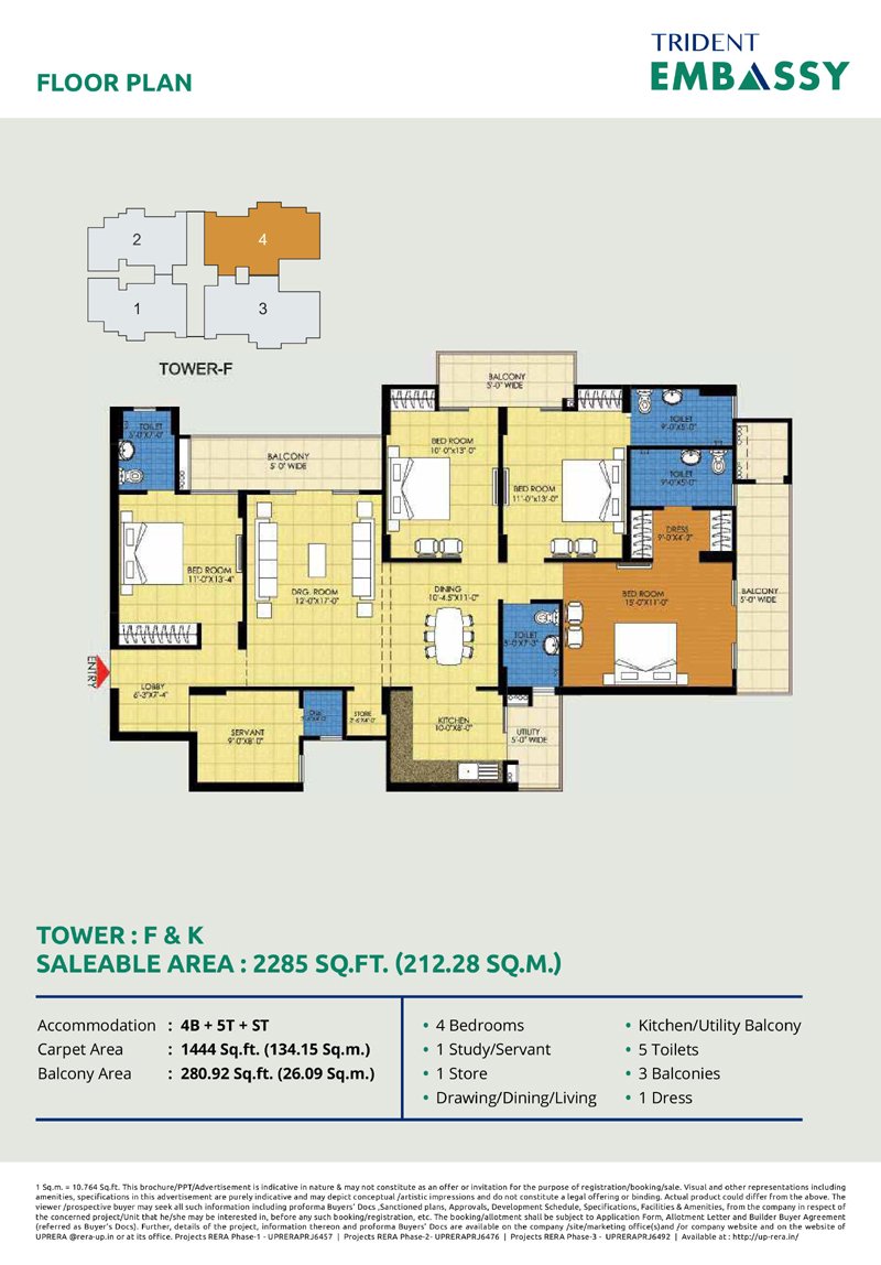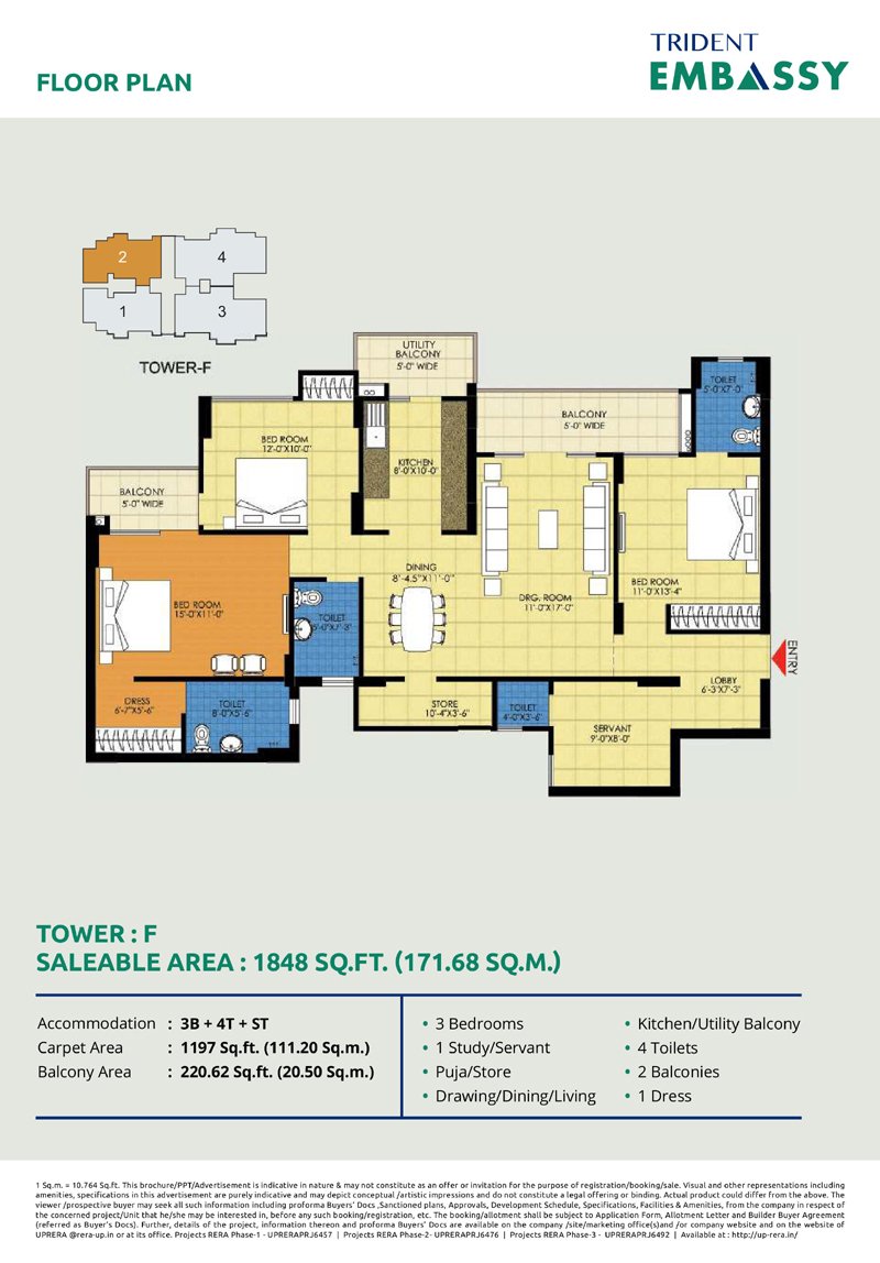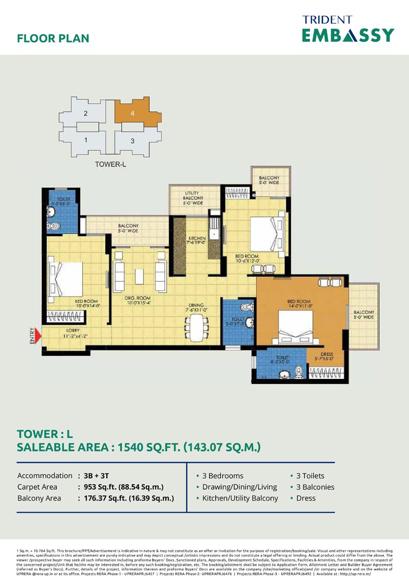Trident Embassy offers a variety of configurations including: 2/3/4 BHK Apartmemts.