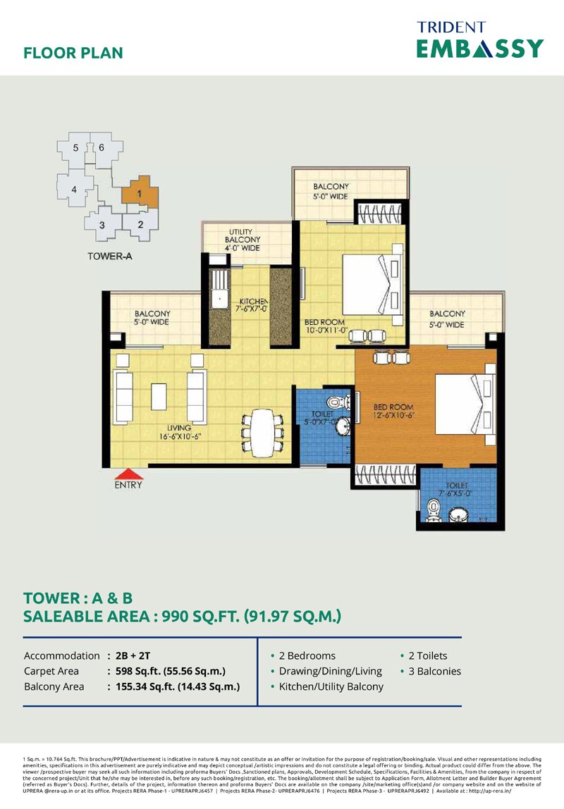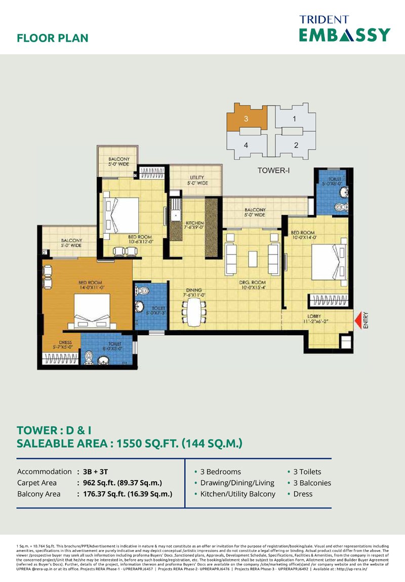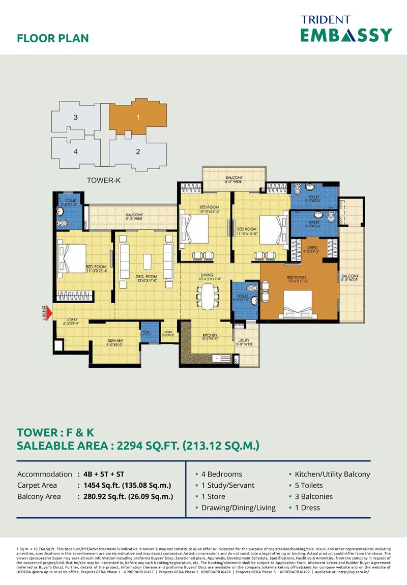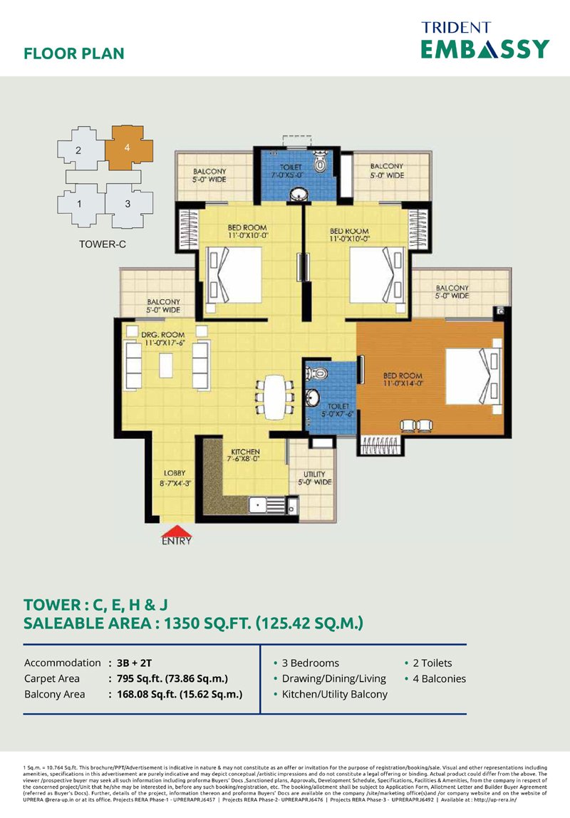 Trident Embassy offers a variety of configurations including: 2/3/4 BHK Apartmemts.