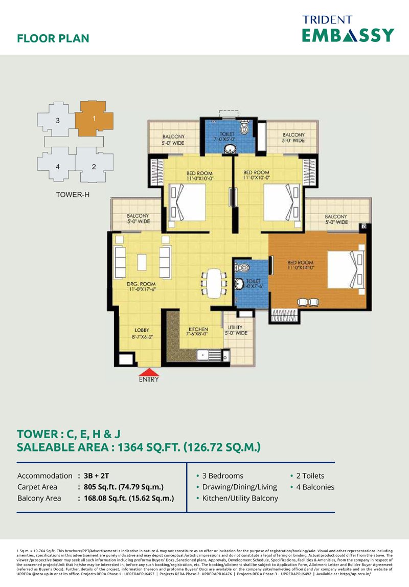 | 3 BHK | 1364 Sq.ft. | On Request |