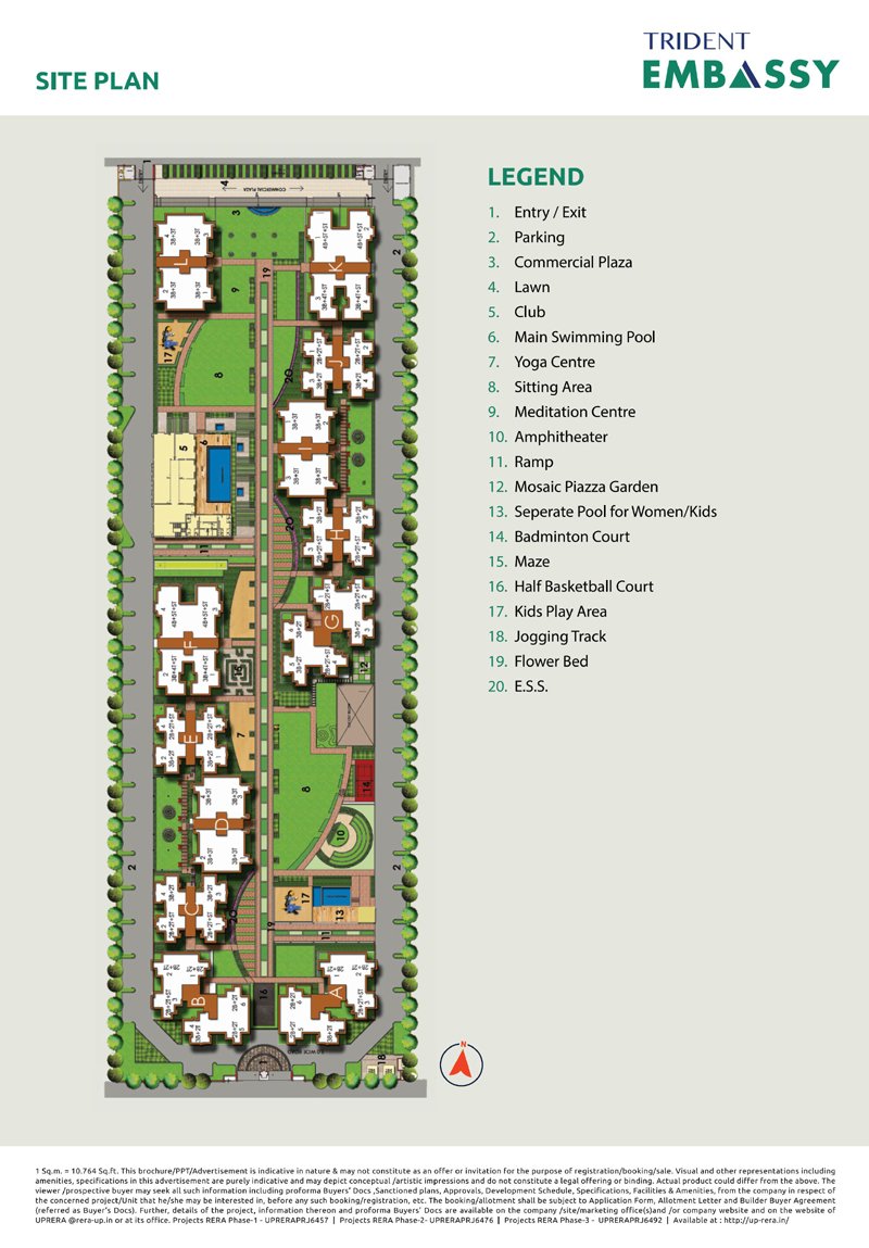 Trident Embassy offers a diverse range of amenities designed to enhance the quality of life of its residents. Whether you are a fitness enthusiast, a sports lover, or someone who enjoys peaceful surroundings, the project has something for everyone.